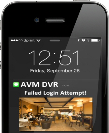 Either of these methods of receiving text message alerts are far more reliable than video motion based alerts that are present in most camera systems. Alerts can also be delivered from the system in the event of someone trying to log into your restaurant cameras with the wrong username or password, helping you keep your system secure.